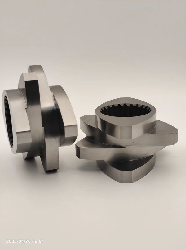 عناصر اللولب هي الأجزاء العاملة الرئيسية للطارد ثنائي اللولب والتي تحدد جودة وإنتاج المنتجات البلاستيكية. بفضل الجودة العالية، تضمن عناصر اللولب خلط الجزيئات البلاستيكية والقطع والانتشار بالإضافة إلى التفاعل فيما بينها وما إلى ذلك. تضمن أداء التنظيف الذاتي العالي للغاية الجودة العالية لخط الإنتاج بأكمله، ولهذا، جمعت شركتنا خبرتنا لسنوات، ومزايا الدول الأجنبية واستخدام العميل، ثم أخذتها في الاعتبار، وصممت جميع أنواع عناصر اللولب المعالجة المناسبة بمعلمات معقولة، وأداء تنظيف ذاتي عالي، ومقاومة للتآكل، ومقاومة للتآكل.